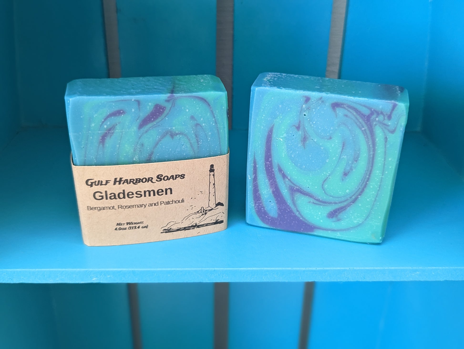 Our Gladesmen soap is a perfect combination scent of bergamot, rosemary, jasmine and patchouli that any man would love.