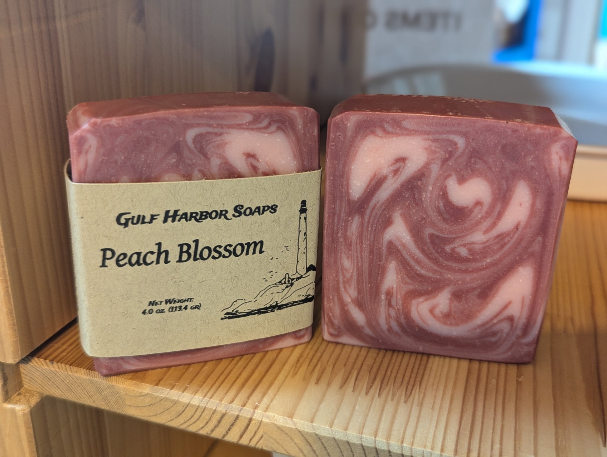 The peach blossom soap has an elegant combination of luxurious flowers of peony, lily, and silk mimosa mixed with the fresh peach scent.
